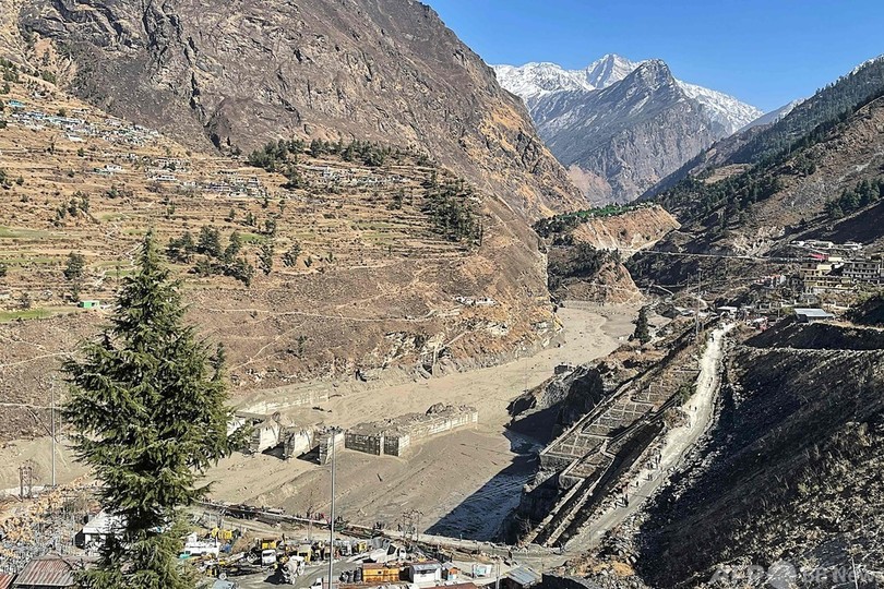 ウッタラカンド州のナンダ・デビ(Nanda Devi)国立公園を流れる川沿いには、約14の氷河があり、気候変動と森林伐採をめぐる懸念の高まりを受けて研究対象となっている。ウッタラカンド宇宙応用センター(Uttarakhand Space Application Centre)のセンター長はAFPに対し、「川の集水域での崩壊は一般的な現象」と説明。一方、環境NGO「Swechha」の創設者は気候変動の影響についての「厳しい警告」だと指摘した。(c)AFP/Jalees ANDRABI
