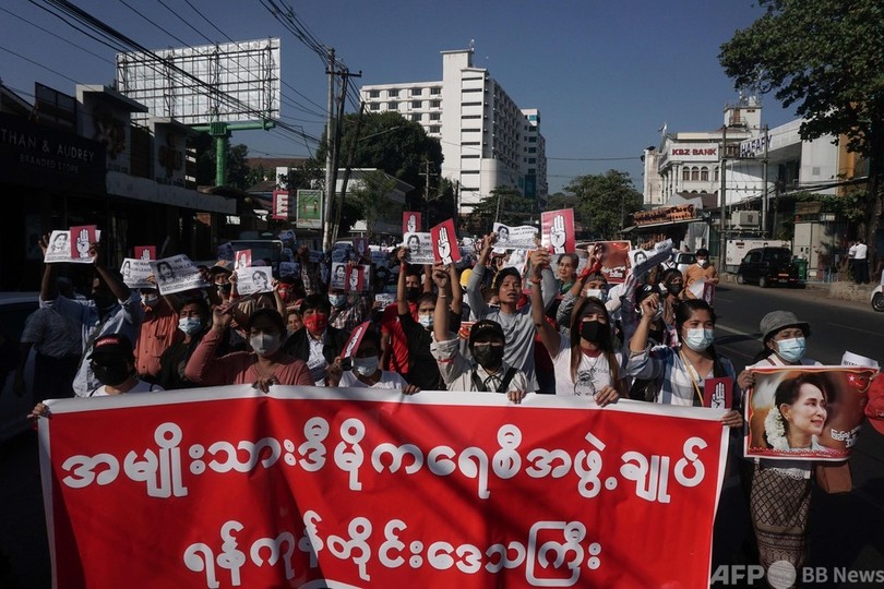 ミャンマーで4日連続抗議デモ、国軍の集会禁止令無視