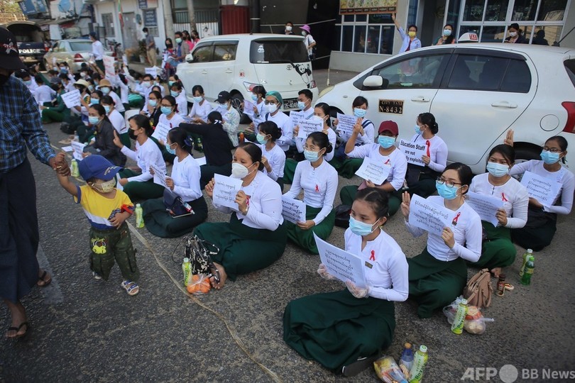 国軍は8日、最大都市ヤンゴンの一部地区の他、先週末から8日にかけて大規模集会が行われた国内の複数地域での5人を超える集会を禁止した。抗議活動が活発な地域には、夜間外出禁止令も発令されている。