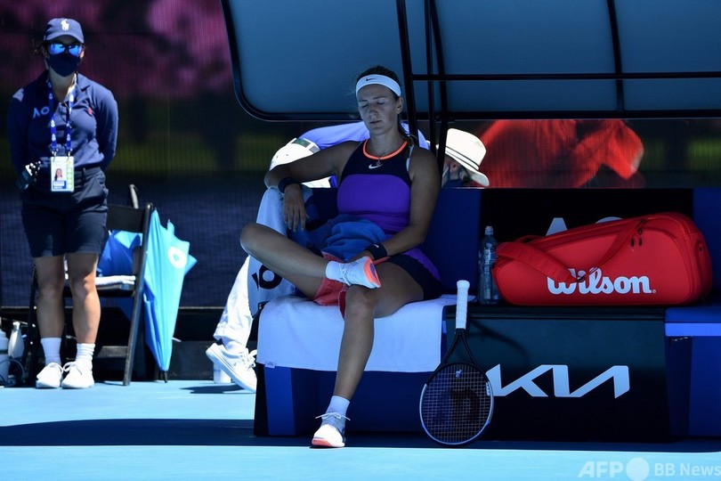 オーストラリア入りした後に14日間の完全隔離を経験していた元世界1位のアザレンカは、息が切れたり、顔が赤くなったりした様子を見せ、第2セットに2度メディカルタイムアウトを取った。
