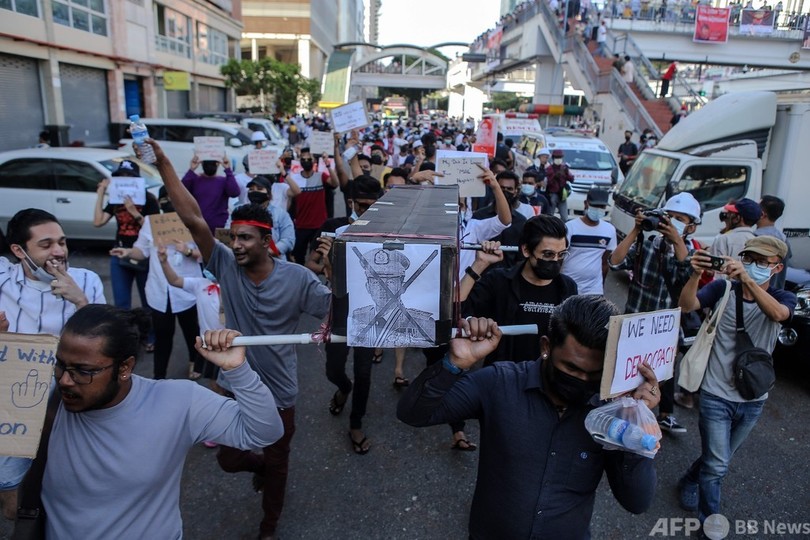 【2月12日 AFP】クーデターを起こしたミャンマー国軍のミン・アウン・フライン(Min Aung Hlaing)総司令官は11日、抗議デモに参加している公務員に職務への復帰を命じた。戻らなければ「有効な措置」を取ると警告し、国内各地で続く反クーデターデモへの忍耐が尽きつつある様子をにじませた。