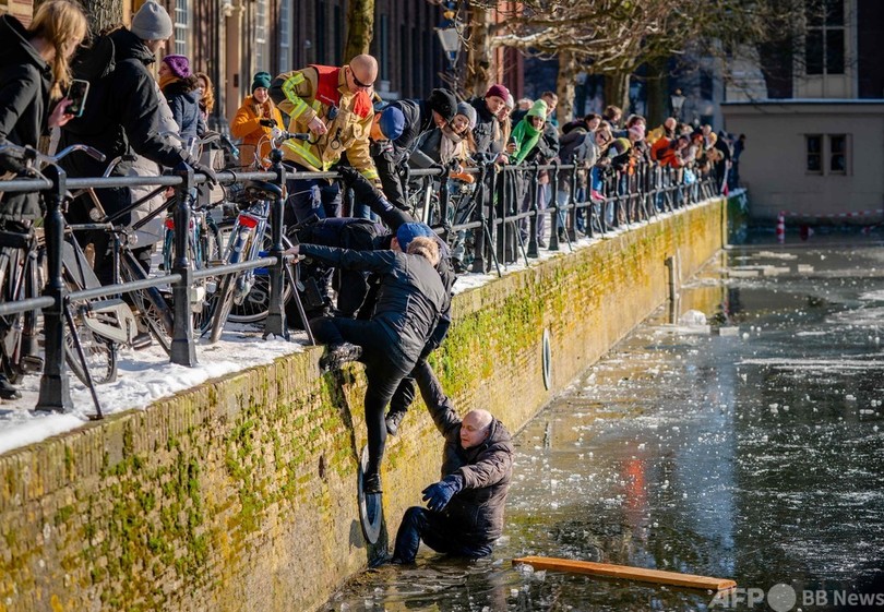 警告無視し薄氷でスケート、冷たい水にドボン オランダ
