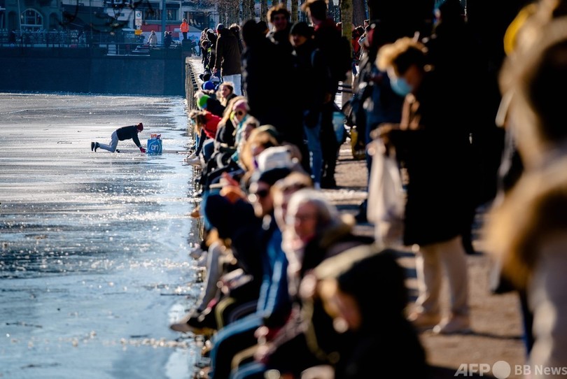 警告無視し薄氷でスケート、冷たい水にドボン オランダ