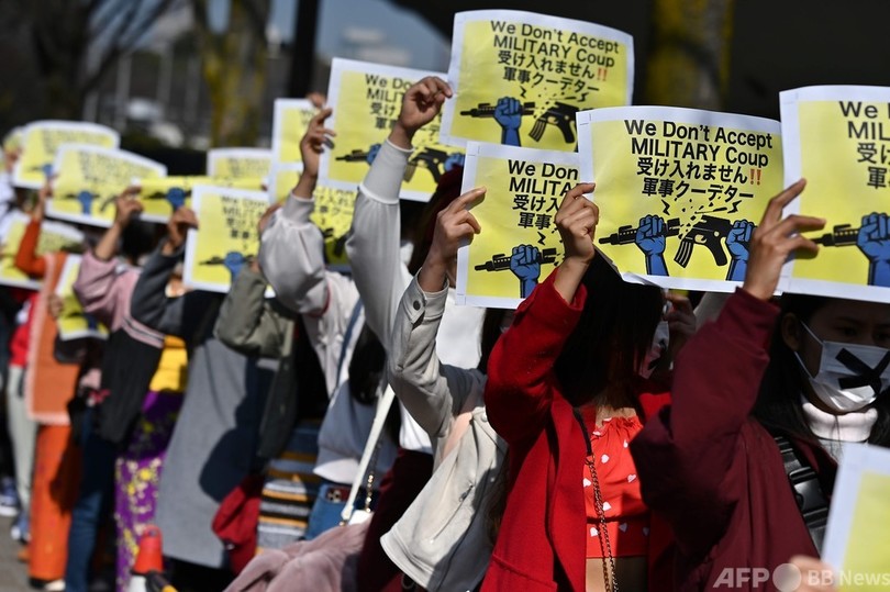 ミャンマー国軍のクーデターに抗議、都内でデモ