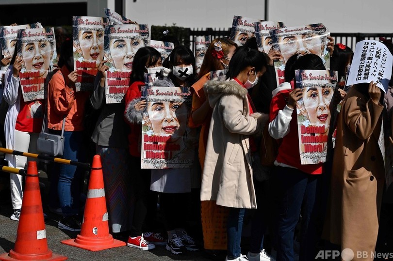 ミャンマー国軍のクーデターに抗議、都内でデモ