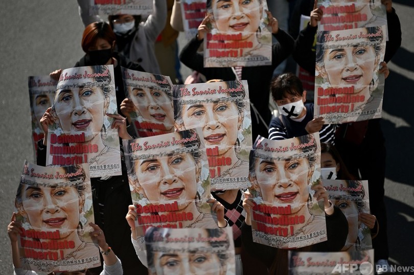 ミャンマー国軍のクーデターに抗議、都内でデモ
