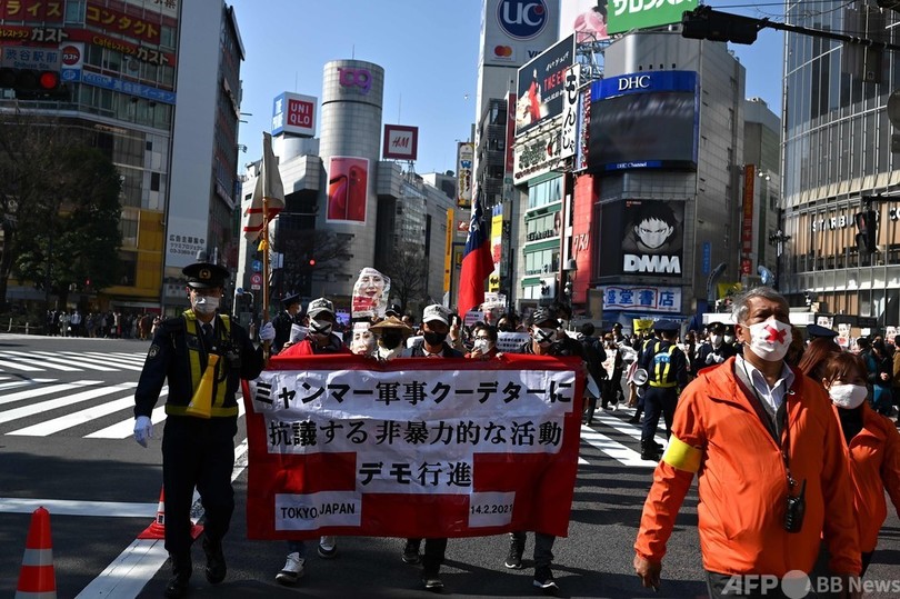 ミャンマー国軍のクーデターに抗議、都内でデモ