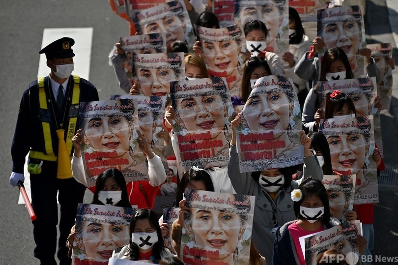 ミャンマー国軍のクーデターに抗議、都内でデモ