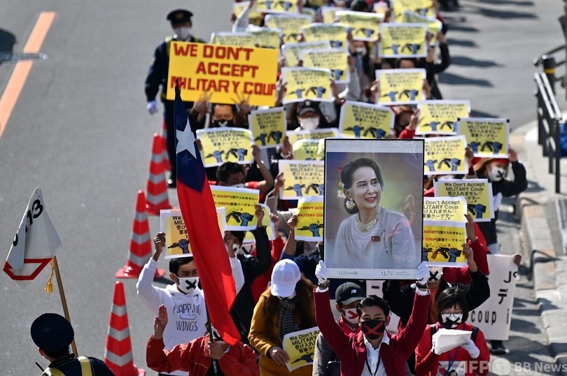 ミャンマー国軍のクーデターに抗議、都内でデモ