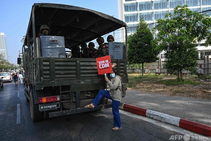 【2月15日 AFP】ミャンマーでは15日、国軍主導の政権が各地に部隊を展開し、インターネット接続を遮断するなど抗議デモに対する取り締まりを強化したにもかかわらず、多くの市民が再び路上に繰り出して抵抗の意思を示した。