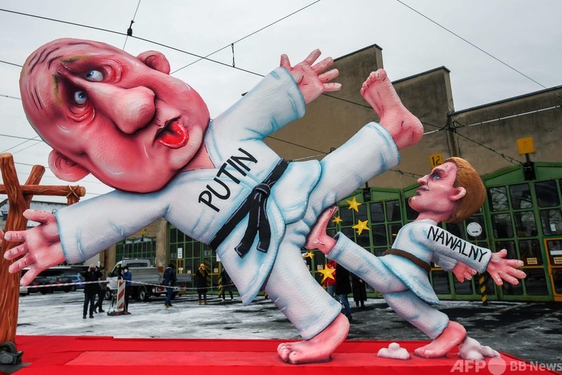 【2月16日 AFP】ドイツ西部デュッセルドルフ(Duesseldorf)で15日、毎年恒例の「ローズマンデー(Rose Monday)」のパレードが行われた。新型コロナウイルスの影響でイベントの規模は縮小されたが、社会を風刺する山車が今年も数多く登場した。