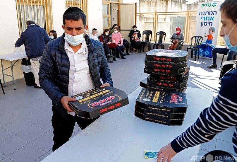 【2月17日 AFP】イスラエル当局は、テルアビブ近郊の主にユダヤ教超正統派の人々が住むブニブラック(Bnei Brak)で、新型コロナウイルスのワクチン接種を受けた人々にピザを配布している。ワクチン接種の積極的実施という国の施策の一環で、接種を推進するための取り組みだ。(c)AFP