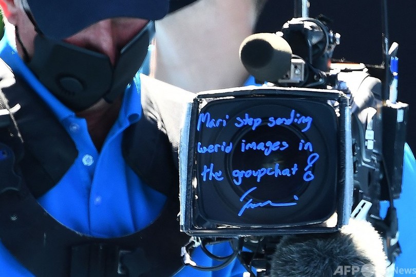 テニス界で異彩を放ち続けている大坂は、準決勝を終えた後、ネット越しに小さくお辞儀してセレーナに敬意を表した。さらに、コートサイドのカメラレンズにサインする際には、姉に向けて「まり、グループチャットで変な画像を送ってくるのはやめて!」と文句を書き込んでいた。(c)AFP