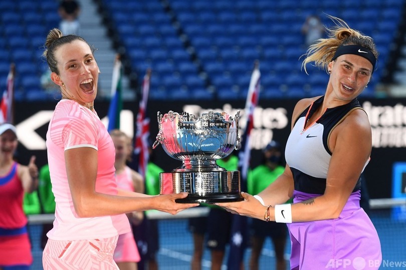 シングルスでは共に4回戦敗退となったメルテンス/サバレンカ組だが、そこからしっかりと立て直し決勝ではチェコ人ペアを圧倒。四大大会(グランドスラム)でのダブルス優勝は2019年の全米オープンテニス(US Open Tennis Championships 2019)以来2度目で、これが通算6勝目となった。(c)AFP