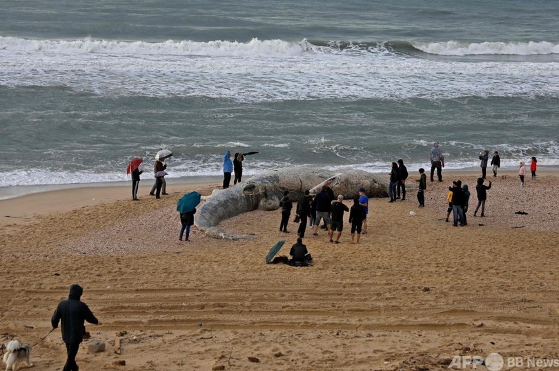 嵐の地中海沿岸にナガスクジラの死骸、イスラエル