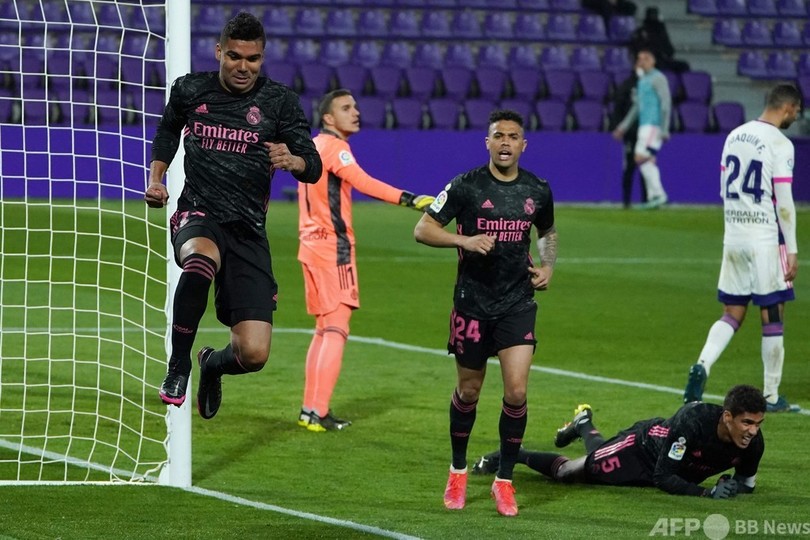 【2月21日 AFP】20-21スペイン1部リーグは20日、第24節の試合が行われ、レアル・マドリード(Real Madrid)はMFカゼミーロ(Casemiro)のゴールが決勝点となり、敵地でレアル・バジャドリード(Real Valladolid)を1-0で下して4連勝をマークした。この一戦の前には首位アトレティコ・マドリード(Atletico de Madrid)がレバンテ(Levante)に0-2で敗れており、2位レアルとの差は3ポイントとなった。
