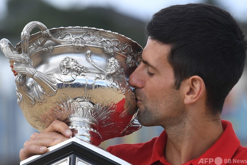 ジョコビッチは決勝でダニール・メドベージェフ(Daniil Medvedev、ロシア)を7-5、6-2、6-2で下して自身の最多記録を更新する9度目の大会制覇を果たし、四大大会(グランドスラム)通算18勝目を挙げた。(c)AFP