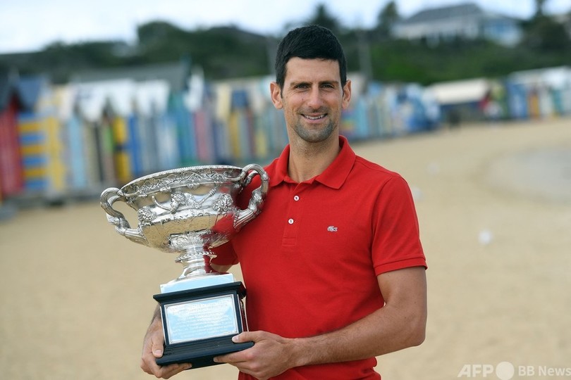 【2月22日 AFP】全豪オープンテニス(Australian Open Tennis Tournament 2021)、男子シングルスを制したノバク・ジョコビッチ(Novak Djokovic、セルビア)が22日、メルボルン市内のブライトンビーチ(Brighton Beach)で優勝トロフィーを手に写真撮影に臨んだ。
