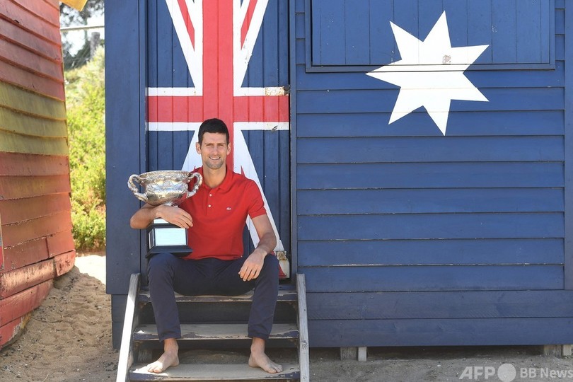 【2月22日 AFP】全豪オープンテニス(Australian Open Tennis Tournament 2021)、男子シングルスを制したノバク・ジョコビッチ(Novak Djokovic、セルビア)が22日、メルボルン市内のブライトンビーチ(Brighton Beach)で優勝トロフィーを手に写真撮影に臨んだ。