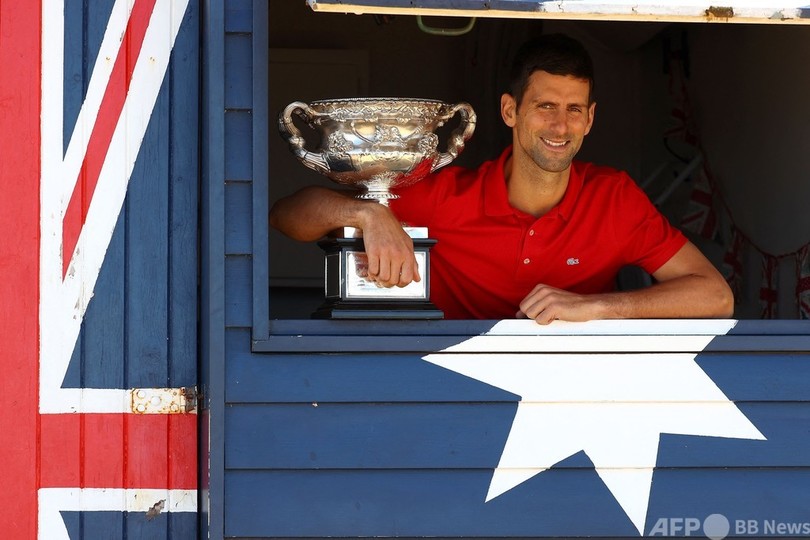 【2月22日 AFP】全豪オープンテニス(Australian Open Tennis Tournament 2021)、男子シングルスを制したノバク・ジョコビッチ(Novak Djokovic、セルビア)が22日、メルボルン市内のブライトンビーチ(Brighton Beach)で優勝トロフィーを手に写真撮影に臨んだ。