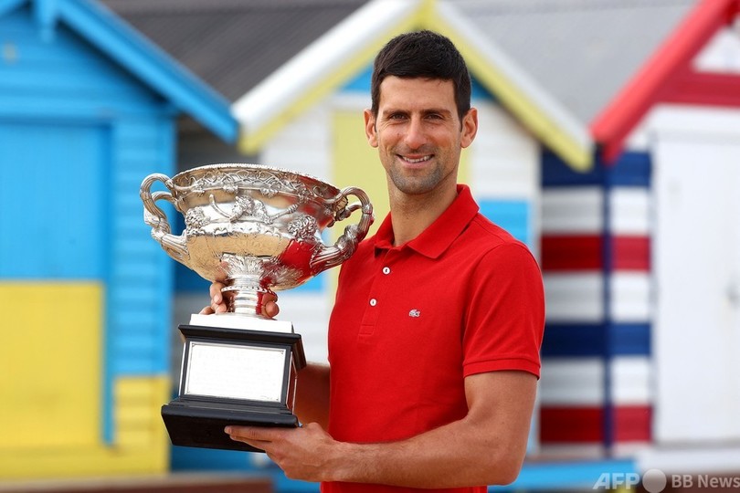 【2月22日 AFP】全豪オープンテニス(Australian Open Tennis Tournament 2021)、男子シングルスを制したノバク・ジョコビッチ(Novak Djokovic、セルビア)が22日、メルボルン市内のブライトンビーチ(Brighton Beach)で優勝トロフィーを手に写真撮影に臨んだ。