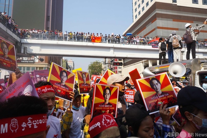 匿名でAFPの取材に応じた別のデモ参加者(29)も、「国軍は選挙で選ばれた文民政府から不当に権力を奪った」と怒りを表明。「自由、民主主義、正義を獲得するまで私たちは闘う」と決意を口にした。