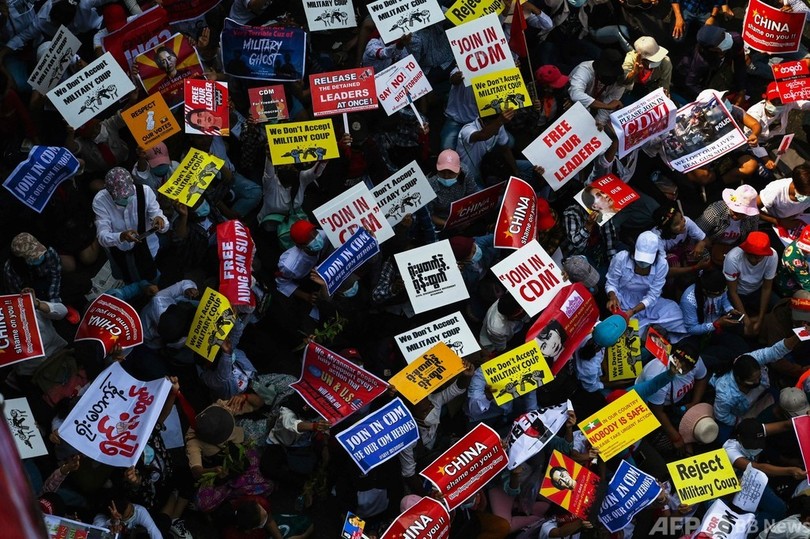 匿名でAFPの取材に応じた別のデモ参加者(29)も、「国軍は選挙で選ばれた文民政府から不当に権力を奪った」と怒りを表明。「自由、民主主義、正義を獲得するまで私たちは闘う」と決意を口にした。