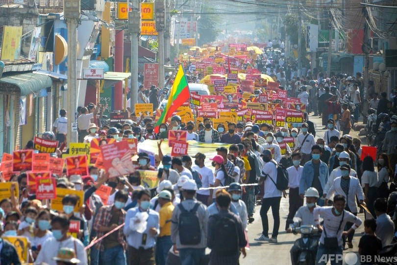 匿名でAFPの取材に応じた別のデモ参加者(29)も、「国軍は選挙で選ばれた文民政府から不当に権力を奪った」と怒りを表明。「自由、民主主義、正義を獲得するまで私たちは闘う」と決意を口にした。