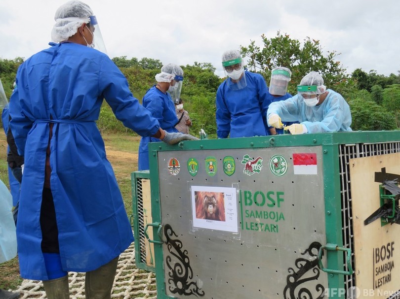 【2月23日 AFP】インドネシア・カリマンタン島(Kalimantan Island、別名:ボルネオ島、Borneo Island)でこのほど、絶滅の深刻な危機にさらされているオランウータン10頭が、保護施設から空路で自然に返された。新型コロナウイルスへの感染リスクから、オランウータンを自然へ返す活動はしばらく行われておらず、1年ぶりとなった。