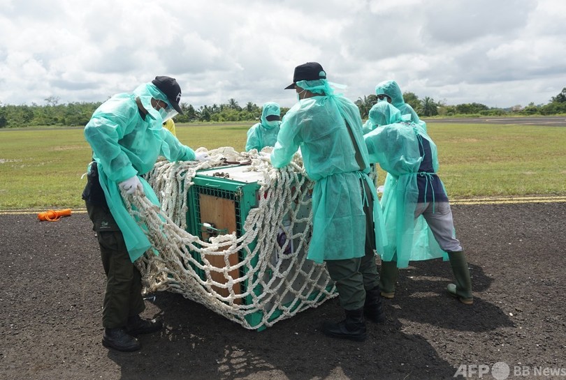 【2月23日 AFP】インドネシア・カリマンタン島(Kalimantan Island、別名:ボルネオ島、Borneo Island)でこのほど、絶滅の深刻な危機にさらされているオランウータン10頭が、保護施設から空路で自然に返された。新型コロナウイルスへの感染リスクから、オランウータンを自然へ返す活動はしばらく行われておらず、1年ぶりとなった。