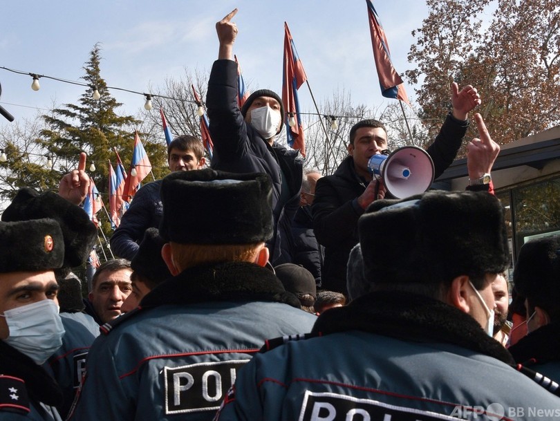 パシニャン首相に対しては、係争地ナゴルノカラバフ(Nagorno-Karabakh)をめぐり隣国アゼルバイジャンとの間で昨年起きた軍事衝突での対応が批判され、国内で圧力が強まっていた。軍参謀本部はこれまでパニシャン氏を支持していたが、この日発表した声明では一転して内閣総辞職を要求。パニシャン氏は、自身を追放するたくらみだとして反発し、数時間後にエレバン中心部で支持者約2万人が参加する集会を開いた。