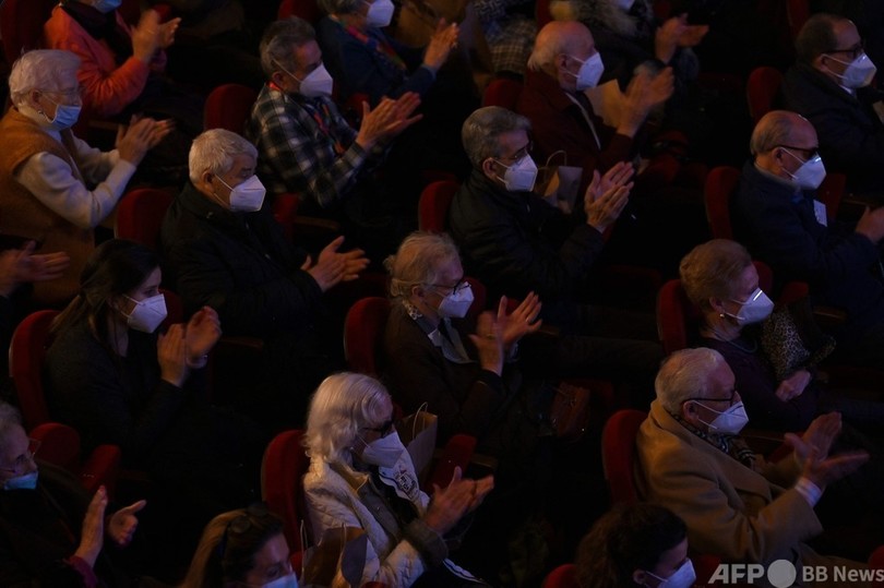 1年ぶりの外出で観劇、ワクチン接種受けた高齢者ら スペイン