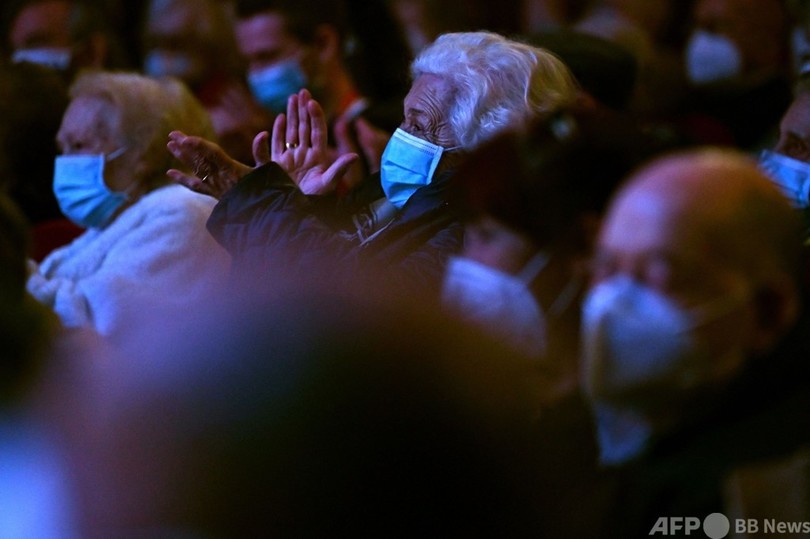 1年ぶりの外出で観劇、ワクチン接種受けた高齢者ら スペイン