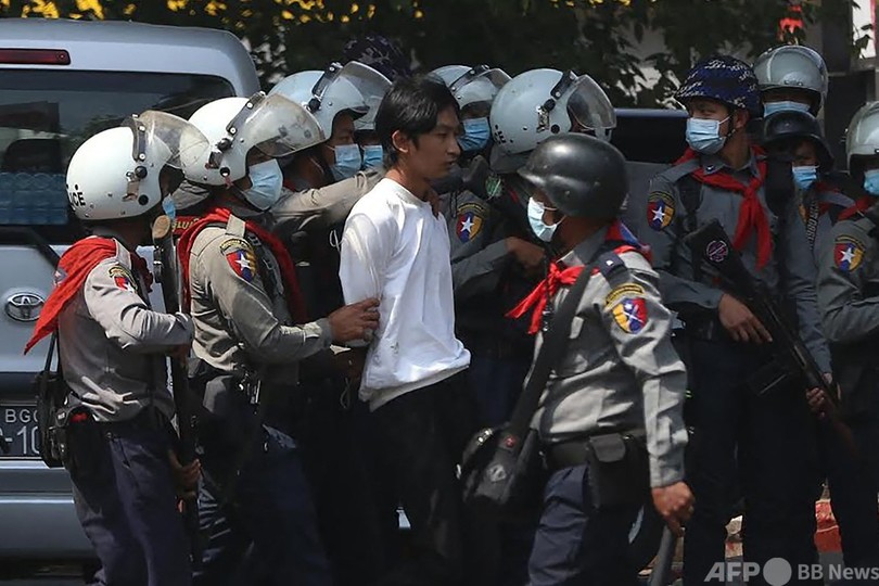 ミャンマー・ヤンゴンで抗議デモ続く、日本人記者一時拘束