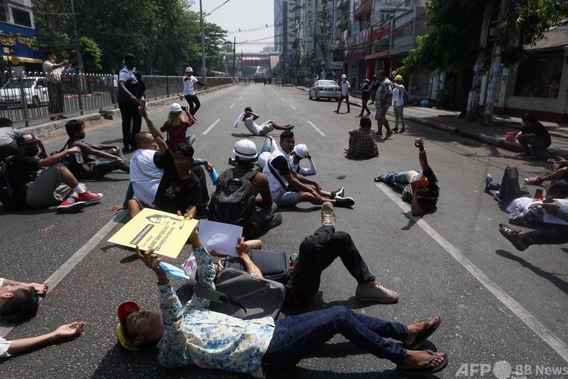 ミャンマー・ヤンゴンで抗議デモ続く、日本人記者一時拘束