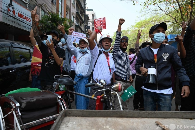 ミャンマー・ヤンゴンで抗議デモ続く、日本人記者一時拘束