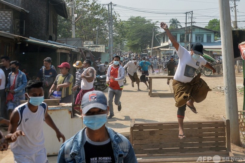ミャンマー・ヤンゴンで抗議デモ続く、日本人記者一時拘束