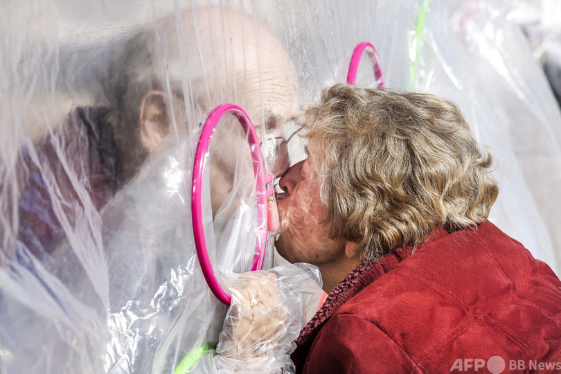 「ハグテント」越しに久しぶりの触れ合い 米高齢者施設