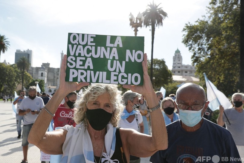 【3月1日 AFP】アルゼンチンで閣僚の友人らが優先的に新型コロナウイルスワクチンの接種を受けていた問題で、首都ブエノスアイレスなどで2月27日、数千人規模の抗議デモが行われた。この「VIPワクチン」問題をめぐっては、保健相が辞任する事態となっている。