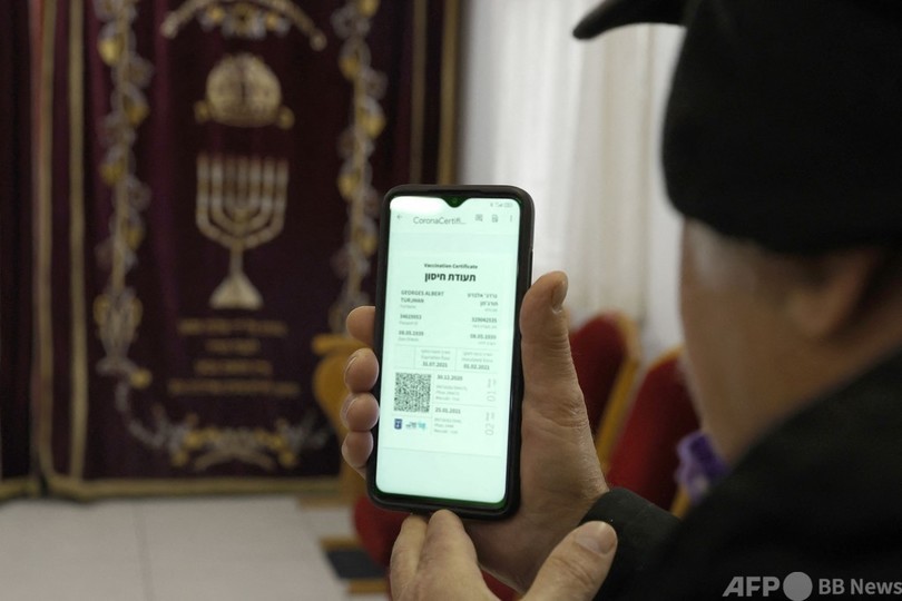 「グリーンパス」という名前は、国内のワクチン接種状況で各国の先を行くイスラエルで発行されている証明書と同じもの。同国のパスはデジタルまたは紙で発行され、取得すると娯楽・スポーツ施設や飲食店に入れるようになる。(c)AFP