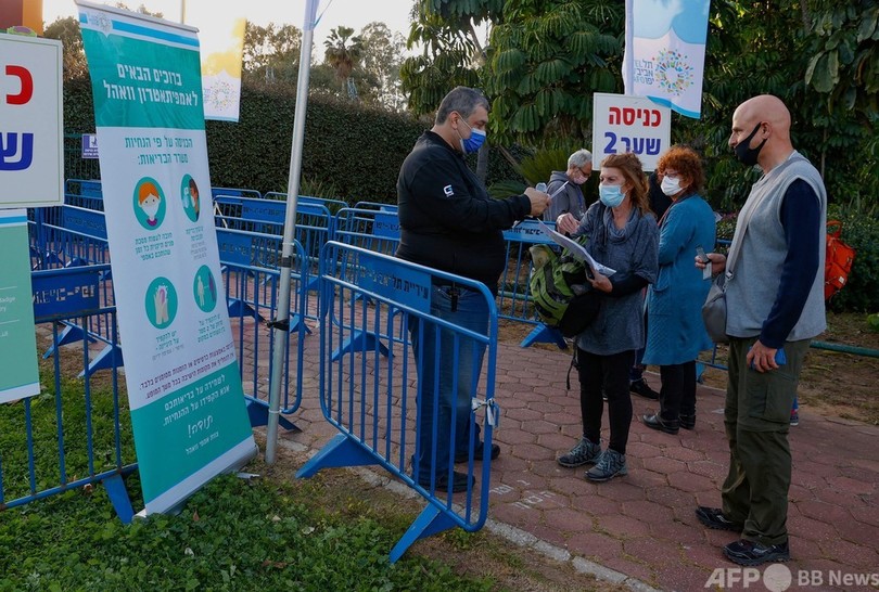 「グリーンパス」という名前は、国内のワクチン接種状況で各国の先を行くイスラエルで発行されている証明書と同じもの。同国のパスはデジタルまたは紙で発行され、取得すると娯楽・スポーツ施設や飲食店に入れるようになる。(c)AFP