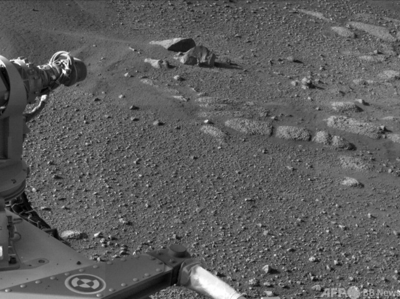 画像は2月28日と3月1日、探査車搭載のカメラ「Navcam」を用いて撮影されたもので、火星の地表や探査車の一部が写っている。(c)AFP