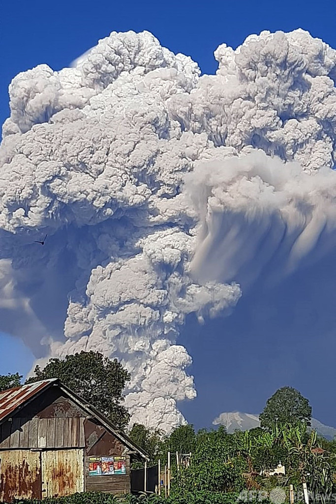 インドネシア・シナブン山が噴火、5000m上空に噴煙到達