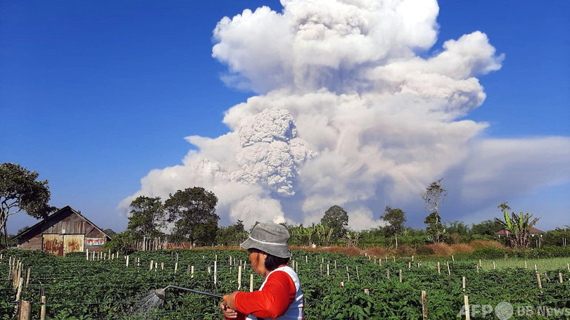 インドネシア・シナブン山が噴火、5000m上空に噴煙到達