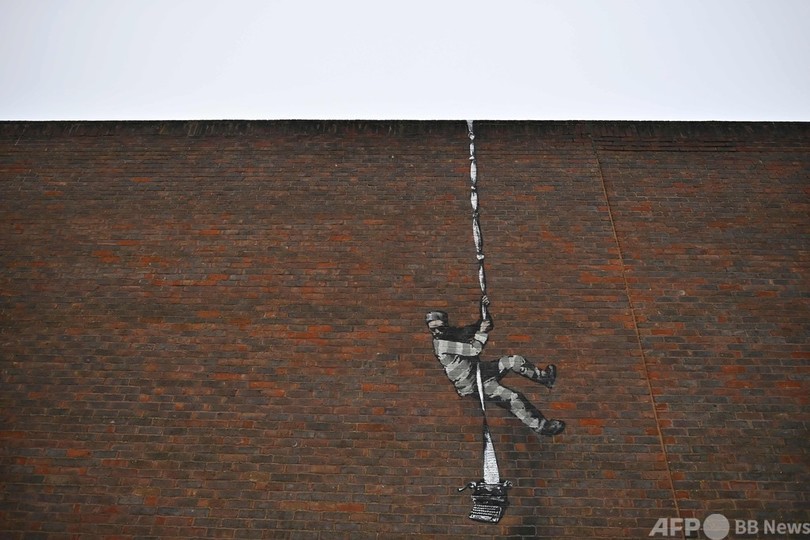 バンクシー新作か 英作家ワイルドが服役の監獄跡地にグラフィティ