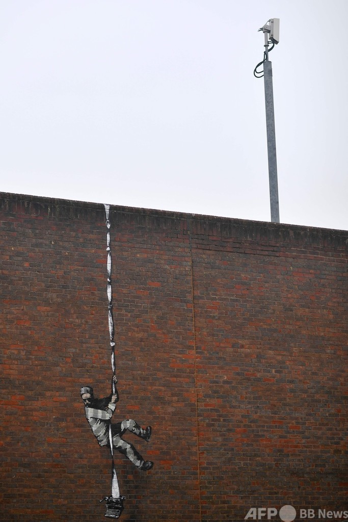 バンクシー新作か 英作家ワイルドが服役の監獄跡地にグラフィティ