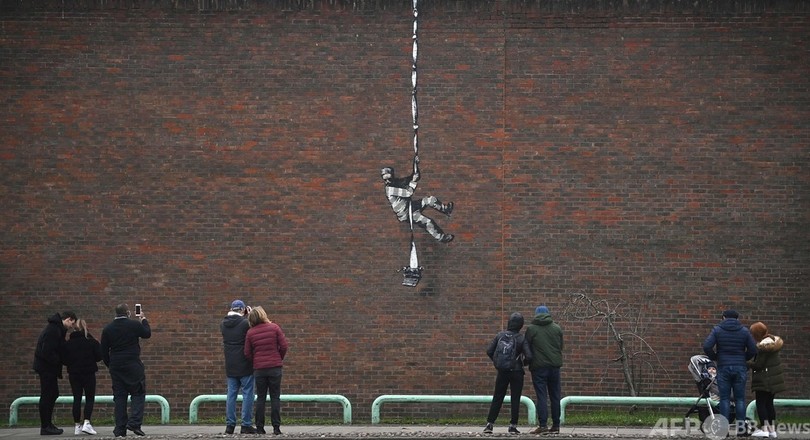 バンクシー新作か 英作家ワイルドが服役の監獄跡地にグラフィティ