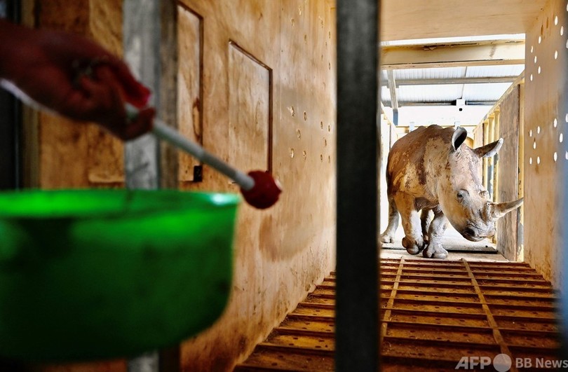【3月3日 AFP】台湾北部の新竹(Hsinchu)県にあるテーマパーク「六福村(Leofoo Village)」で飼育されている雌のミナミシロサイ「艾瑪(アイマ)」。アイマは繁殖を目的に、近く埼玉県の東武動物公園(Tobu Zoo)に送られることになっている。(c)AFP