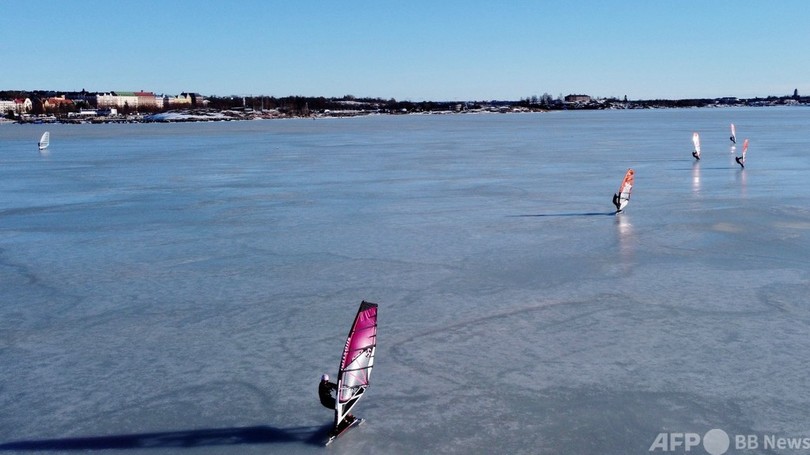 そのうちの一人、エサ・ハルユラ(Esa Harjula)さんが説明した。「ブーム(帆を張る支柱)をしっかり握っておかないと、手にけがをしてしまう。それ以外は、夏(に海上でウインドサーフィンをするの)に比べて氷の上を滑る方がずっと簡単です」