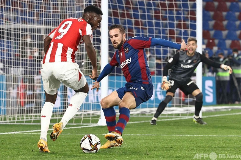 【3月5日 AFP】サッカースペイン国王杯(Copa del Rey 2020-21)は4日、準決勝の第2戦が行われ、アスレティック・ビルバオ(Athletic Bilbao)は延長戦の末にレバンテ(Levante)を2-1で下し、2戦合計スコア3-2で決勝進出を決めた。